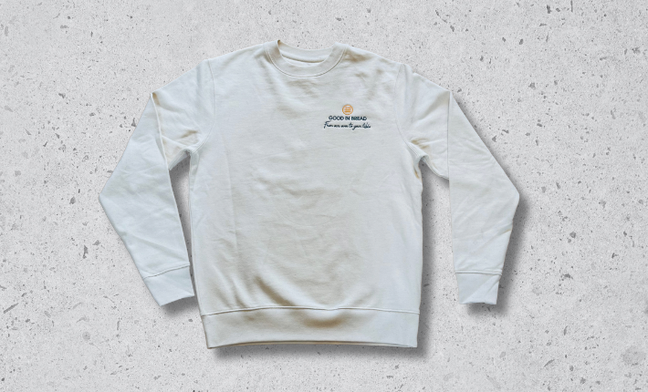 This is the Good In Bread iconic crew neck sweatshirt! It has been Emily’s go-to since starting Good In Bread and she wears it to all of her company events!